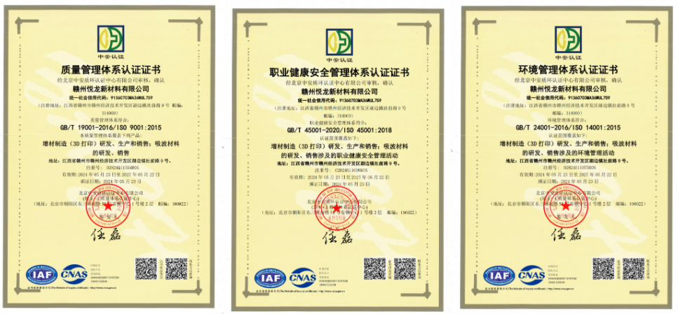 喜訊!悅安新材全資子公司-贛州悅龍新材料有限公司順利通過ISO“三標(biāo)”管理體系認(rèn)證